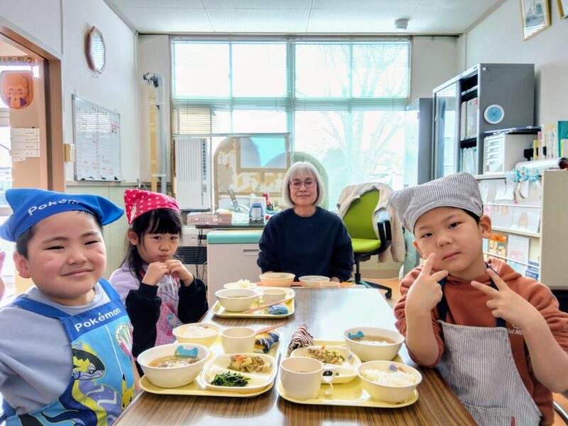 園長先生と給食。おいしかったね。