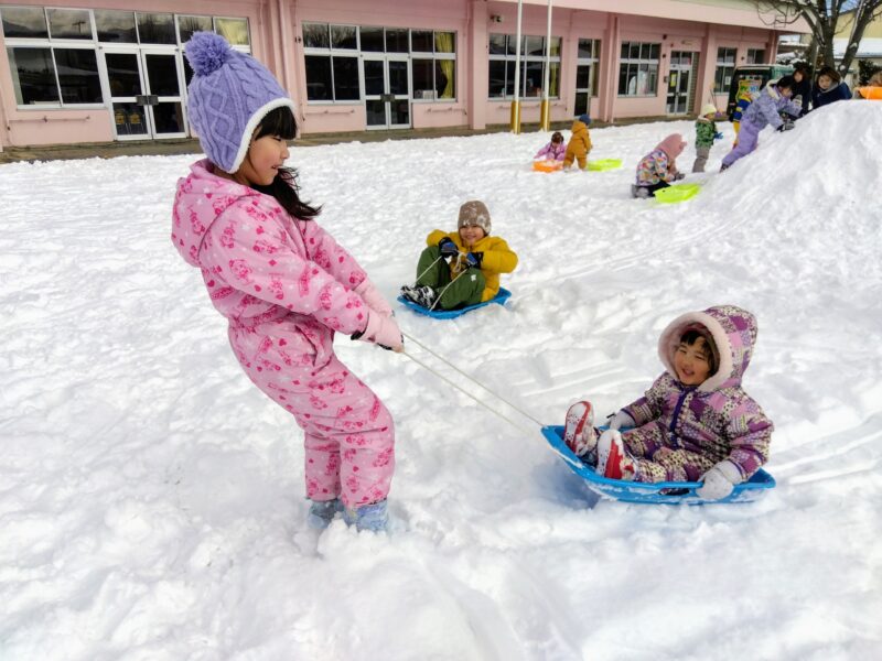 でき、みんなでソリ遊びをしたり、