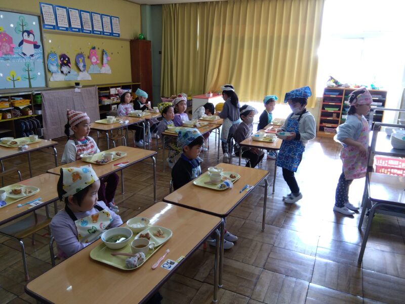 給食当番さんも、待っているお友だちも姿勢が立派です!