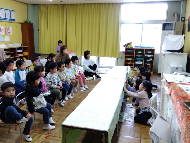話す子どもたち。外の温かさもあり、春の訪れを感じつつ、