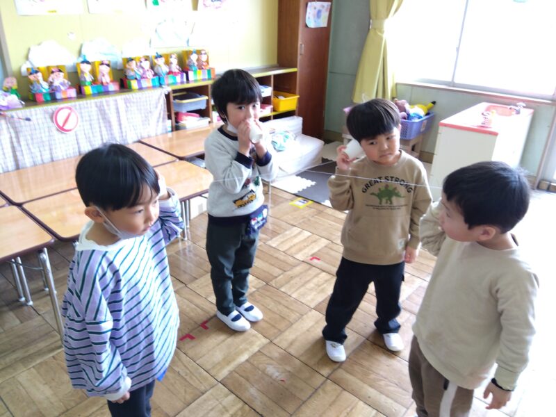 音の伝わり方実験 その➁糸でんわ 4人でも聞こえた!